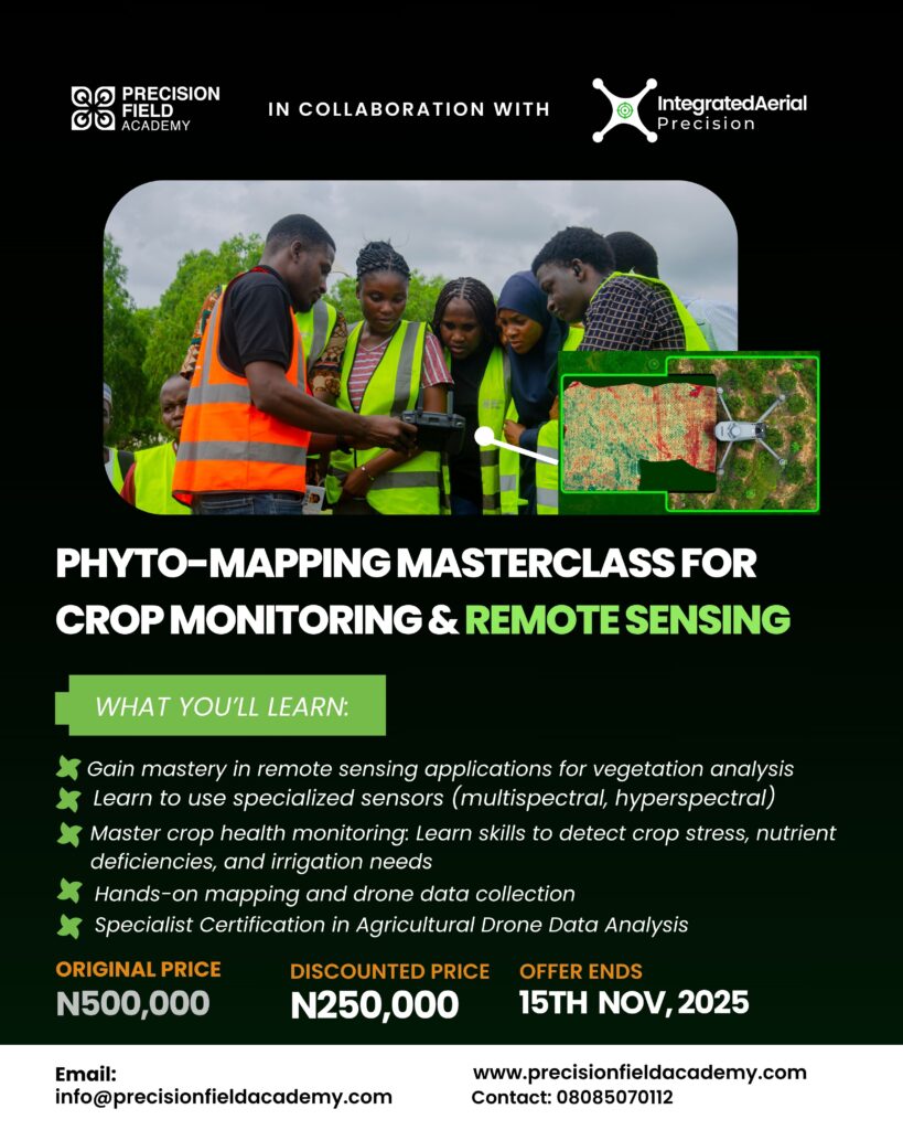 The Precision Field Academy Drone training held at the Federal University of Agriculture, Abeokuta, was a defining moment in my agricultural journey. The program exposed me to cutting-edge innovations, especially the integration of drone technology for precision mapping and farm monitoring. I gained the confidence and skills to transform traditional farming into a data-driven, technology-powered enterprise that promotes sustainability, efficiency, and measurable impact across agricultural systems.