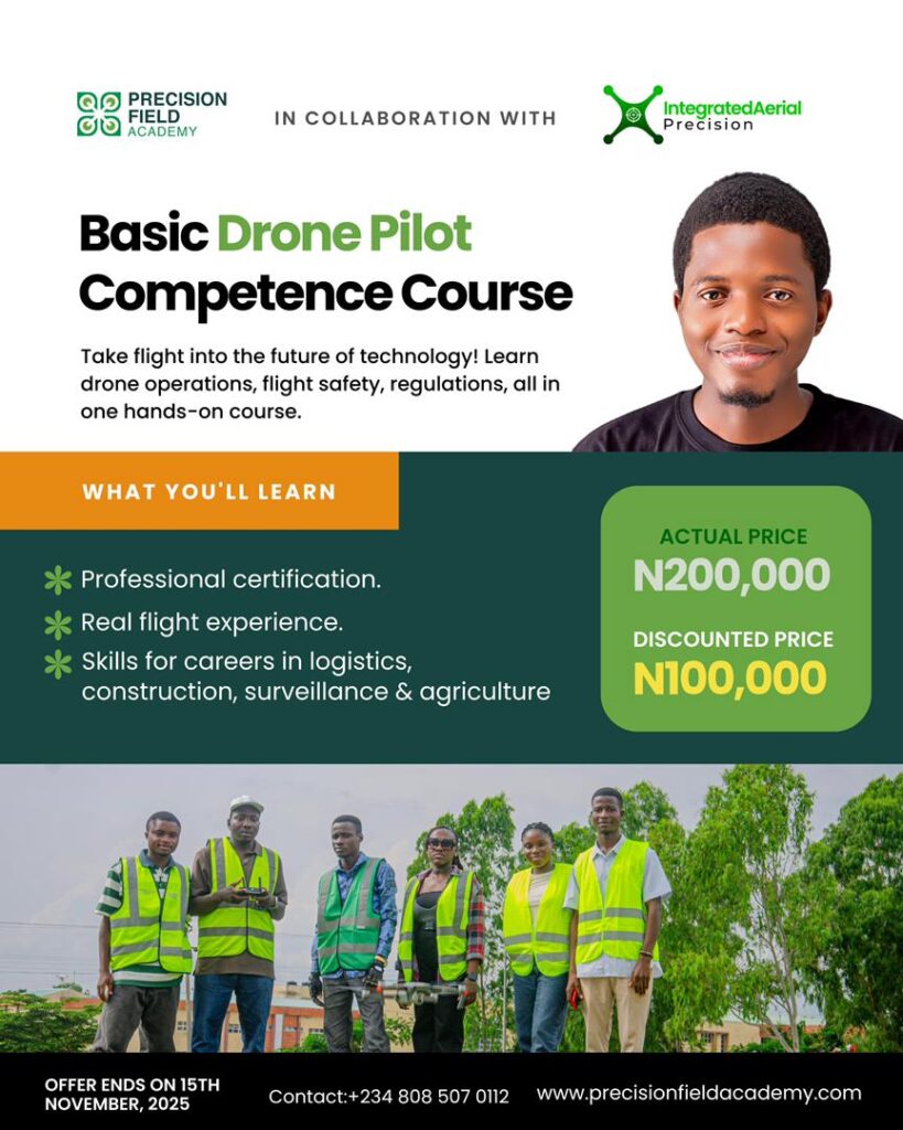 Before joining Precision Field Academy, I thought drones were toys. Now I manage an aerial spraying business serving over 200 farmers in Ogun State.